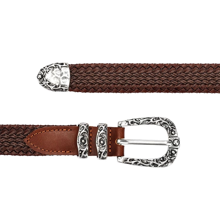 Brown leather & cotton weaving strap