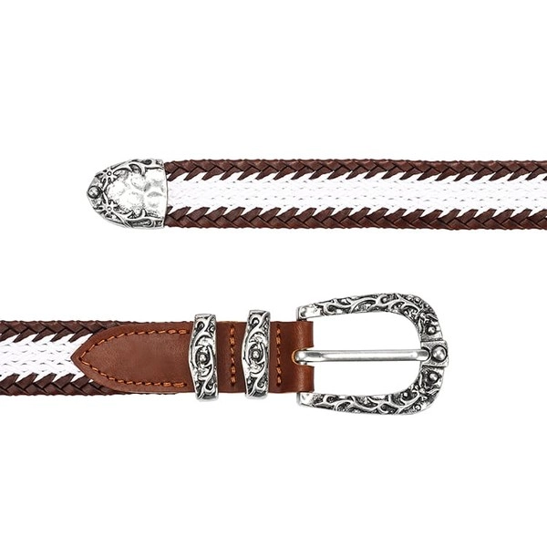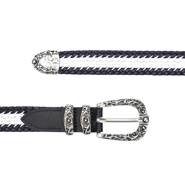 가죽과 면실이 엮이며 만들어지는 규칙적인 문양의 스트랩은 월계수잎 문양의 버클과 어우러지며 코디네이션에 독특한 텍스처를 만듭니다.