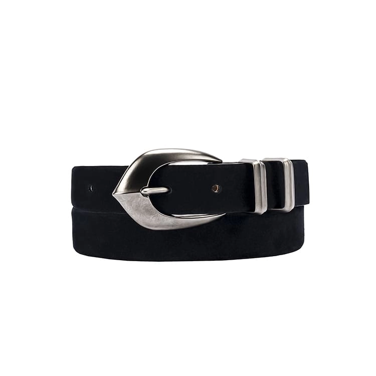 부드러운 스웨이드 가죽과 단단한 금속 버클은 서로 다르지만 시간이 지나며 빈티지함을 함께 더해가는 고급스러운 텍스처의 벨트입니다.